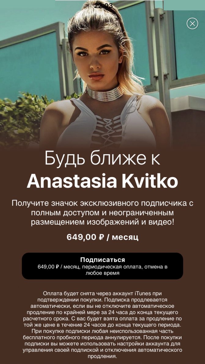 У девушки есть своё собственное приложение, в котором она делится теми фото, которых нет в её инстаграме. Оно бесплатно, в но для получения доступа ко всем фото и видео необходима подписка, стоимость которой составляет 649 рублей в месяц. Без неё доступна лишь часть дополнительного контента.