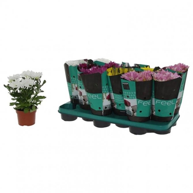 Предлагаем вам присмотреться к фото домашних хризантем на пачках с семенами или на цвет бутонов, если покупаете уже взрослое растение.