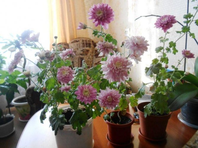 Селекционеры вывели для домашних условий хризантему невысокого роста, благодаря применению препаратов приостанавливающих рост.
