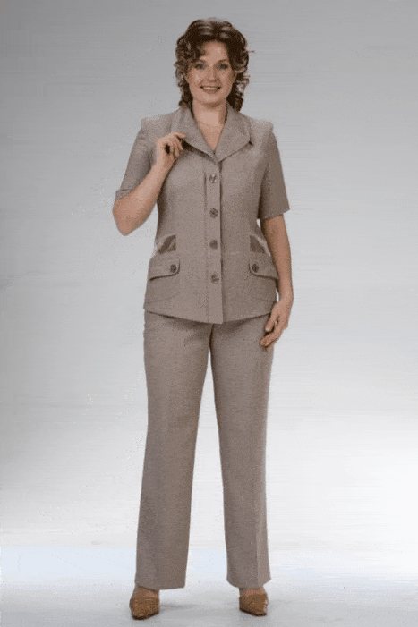 Элегантный брючный костюм обязан быть в гардеробе у женщины после 50. При этом особое внимание следует уделить верхней части комплекта. Жакет не должен быть удлиненным, так как подобный силуэт придает громоздкости. Он должен, наоборот, утончить фигуру с помощью женственного приталенного кроя. Не исключен и прямой фасон с V-образным вырезом, который визуально вытягивает фигуру. Небольшая баска и укороченный рукав внесут нотку игривости в образ.