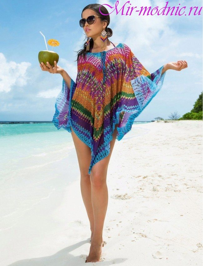 Летний отдых на пляже, не исключён для дам и с пышными формами. В качестве спасательного круга, чтобы прикрыть полноту и сделать образ комфортным и продуманным, стилисты советуют использовать пляжную накидку.