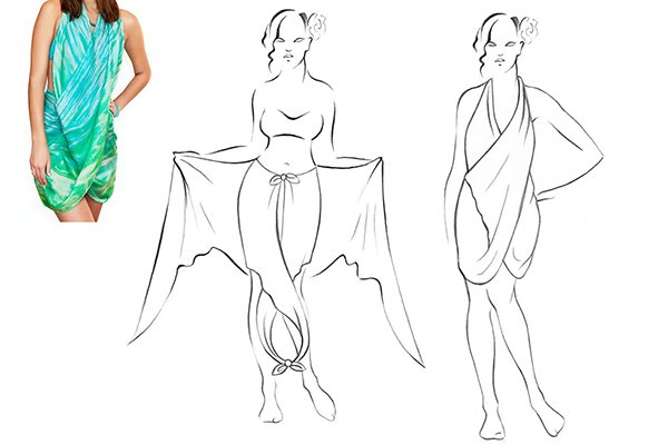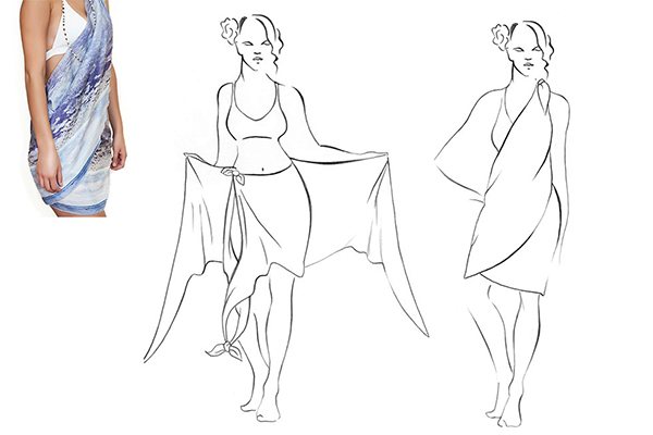 Обернуть платок вокруг тела и связать два конца на груди, сбоку или на затылке. Созданный образ позволяет посещать пляжные кафе и мини-магазины, так как это уже не пляжный вариант, а классика жанра. Для полных женщин рекомендуют использовать варианты, которые хорошо держаться на плечах – «Нефертити», «Тонга».