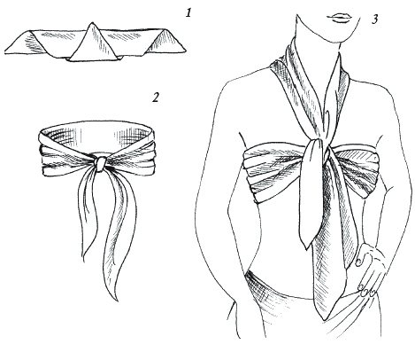 - Слегка перекрутить концы, завести их за шею и завязать в узел.