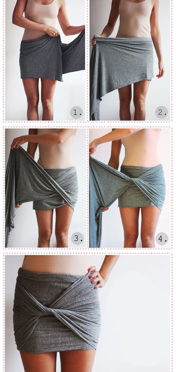Можно сделать юбочку и более короткую – вам только нужно сложить платок таким образом, чтобы образовалась необходимая вам длина. А затем также обматываем его поверх бедер и завязываем оба конца в узел (на боку или посередине – по вашему желанию). Наверно, самый пляжный вариант из всех, поэтому и аксессуары у него должны быть соответствующие: соломенные шляпа и небольшая пляжная сумка, вьетнамки или другая удобная пляжная обувь.