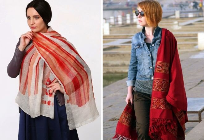 Стилисты дают рекомендации отдать предпочтение яркости и сочности тонов и оттенков. Такие шарфы будут прекрасно гармонировать с любым основным женским образом.