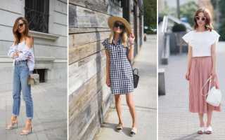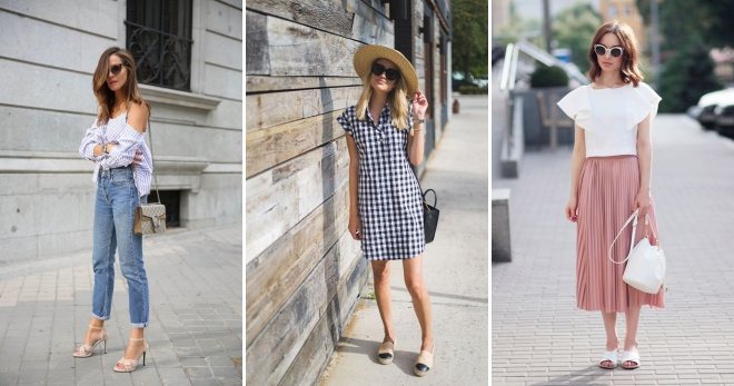 Замечательным вариантом станет сочетание джинсов с вещами в классическом или мужском стиле. Классно будут смотреться темно-синие бойфренды с белой рубашкой оверсайз. Можно игриво завязать ее на узел или носить нараспашку, одев под низ спортивный топ. Чтобы облегчить ансамбль и добавить женственности, обуйте сандалии на плоской подошве или танкетке. Белая футболка с V-образным вырезом и бежевыми туфлями-лодочками, расклешенный топ с лифом-бюстье и яркие босоножки, прозрачная нежно-розовая блузка с рваными джинсами – все это удачные летние образы 2021 для девушек.
