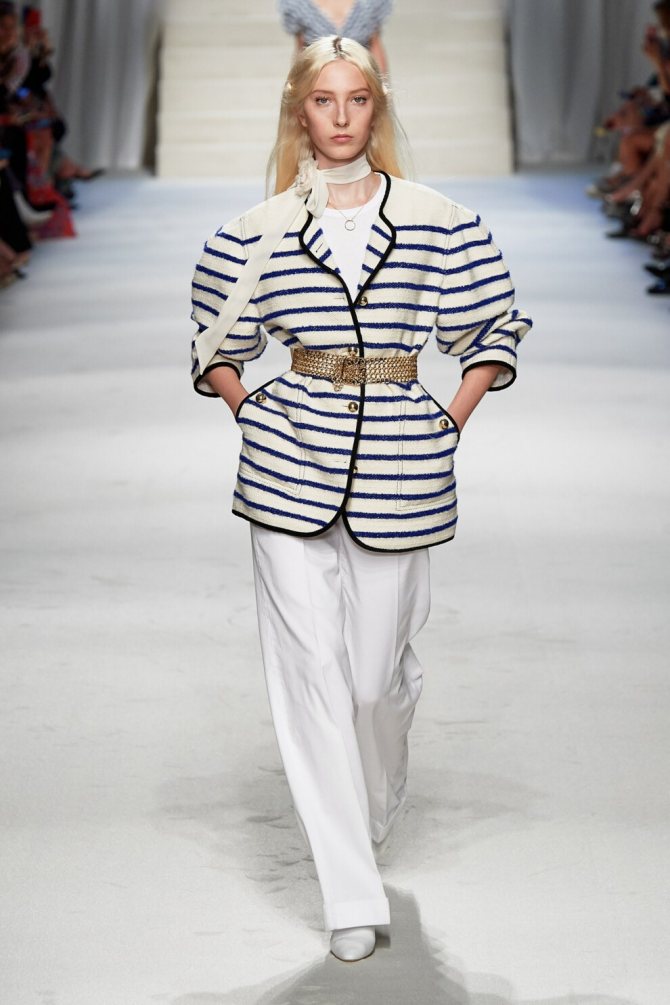 Летние образы, украшенные морской полоской сразу навевают ощущение легкого морского бриза и теплого песка под ногами. Именно поэтому дизайнеры отдают предпочтение полосатому принту в летнее время. В 1930-х годах Коко Шанель популяризировала одежду в морскую полоску и придала ей новое значение. С тех пор полосатый узор стали носить не только моряки, но и девушки. Спустя десятки лет этот легендарный принт по-прежнему украшает коллекции французского модного Дома. Так, этим летом морская полоска украсила кардиганы и футболки Chanel. В коллекции Tory Burch появились базовые футболки-тельняшки, а у Philosophy di Lorenzo Serafini – воздушные полупрозрачные платья в сине-белый полосатый принт.