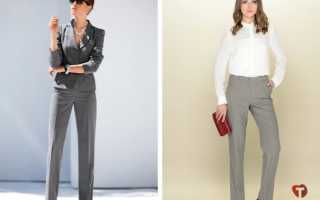- Классические. Приталенный двубортный верх в дуэте с прямыми брюками со стрелами является выигрышным вариантом для любого мероприятия. Например, для вечеринки такой костюм можно надеть с прозрачной блузкой и обувью на высоком каблуке. В повседневности классические модели можно смело носить с рубашкой или футболкой, а также обувью на низком ходу. Ещё одно преимущество этих фасонов заключается в том, что за счёт особенностей кроя, они отлично скрывают живот и выделяют линию талии.
