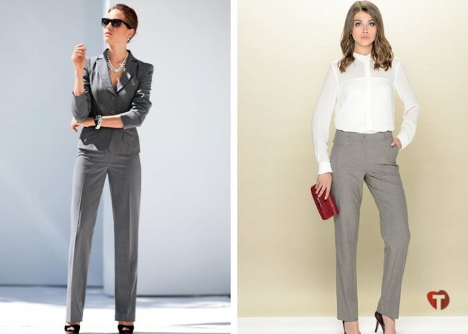 Классические цвета брюк: черный, темно-синий, серый. Они подходят для деловых образов и удачно смотрятся в костюмах. Для неформальных, повседневных нарядов можно подбирать яркие стильные оттенки: голубой, красный, зеленый. Выбор лучшей длины штанов неделового стиля зависит от роста. Классические штаны подходят высоким людям, на мужчинах и женщинах среднего и низкого роста лучше сидят укороченные варианты до середины икры.