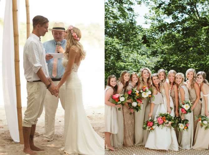 В убранстве цвета айвори можно смело отправляться на венчание, выездную церемонию, празднование в ресторане, пляжную неофициальную вечеринку.