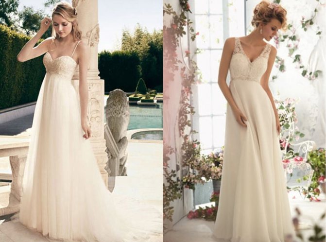 На менее официальной свадьбе можно красоваться в коротком наряде, конечно, если позволяет фигура. Непростительно прятать безупречные формы. Выбор за вами, блистать в атласном платье-комбинации, классическом, но свободном наряде или выбрать стиль ампир.