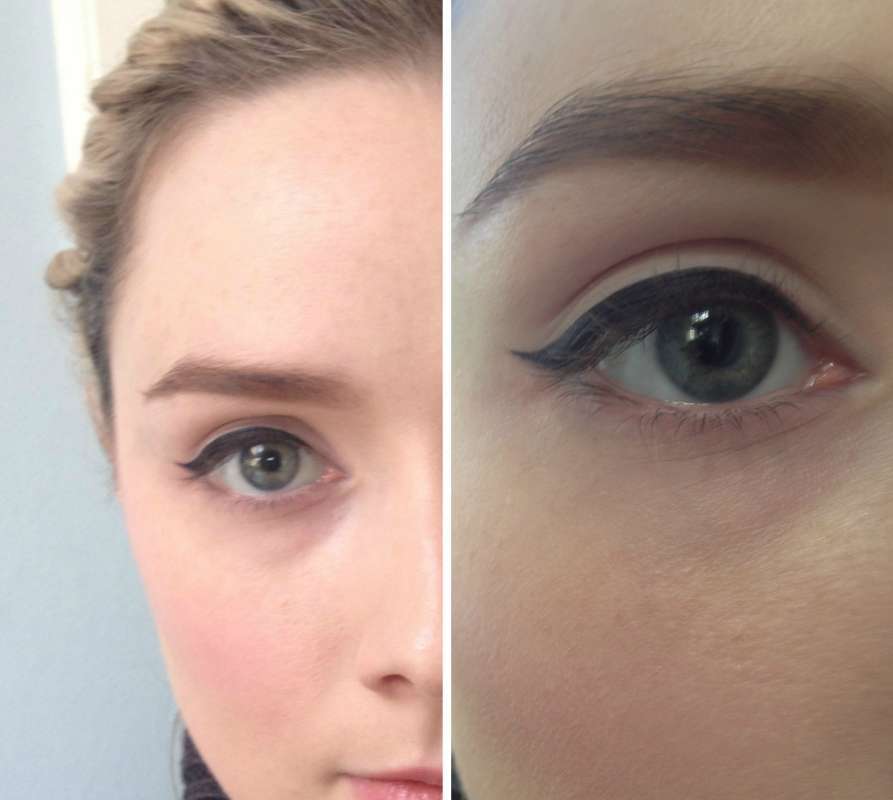 Самая подходящая форма стрелок для нависшего века – широкие, растушеванные на всю нижнюю область века от складки до ресниц. Цвет линии надо выбирать как можно темнее.