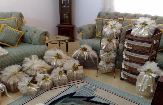 Сейчас на Кавказе, эти хлопоты ложатся на руки родственников будущего мужа. Но так как это занимает очень много времени, то это поручают специальным подготовленным людям, которые с легкостью помогут собрать все необходимое.