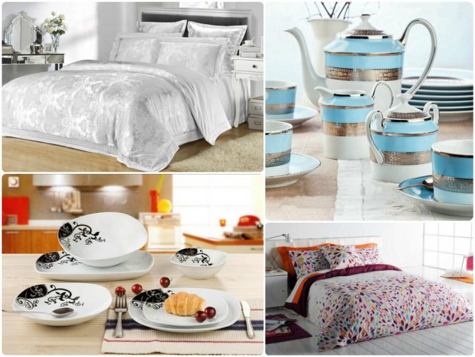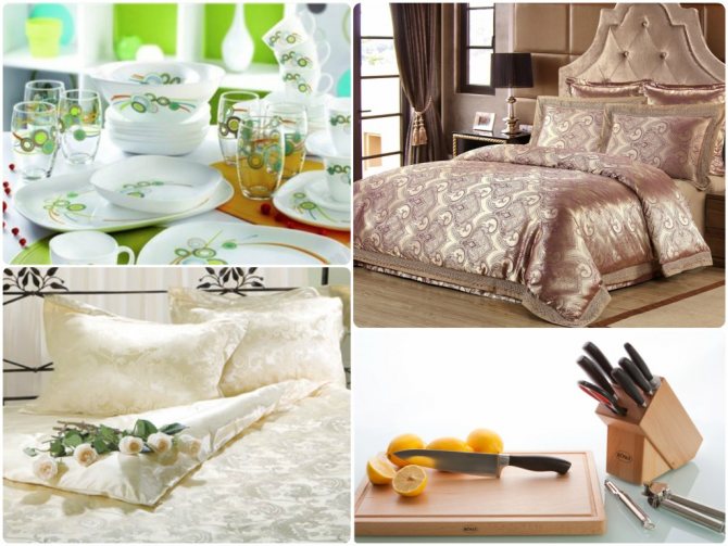 - Посуда. Будет очень замечательно, если молодая жена приготовит мужу угощение в новой сверкающей посуде (или он ей).