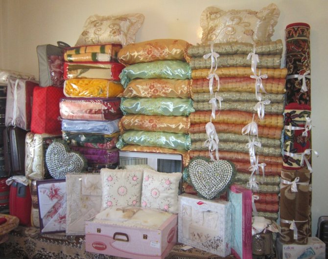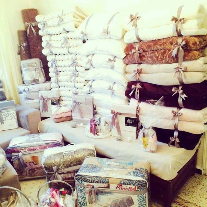 Сейчас приданое с рождения дочери не собирается. При наличии средств можно купить все необходимое за пару дней. Однако такое решение экономически не выгодно. Лучше позаботиться о подготовке приданого заранее.