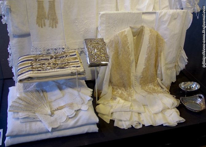 Каждая мать начинала накапливать разную домашнюю утварь и белье, когда ее дочь еще «ходила под стол пешком», а к шестнадцати годам (к моменту достижения брачного возраста) все уже было готово. На нижних юбках и подушках вышивалась первая буква имени девушки, а непосредственно перед самой свадьбой к ней присоединялась заглавная буква новой фамилии. Нижнее белье, полотенца, простыни, ночные рубахи и прочее добро аккуратно и трепетно укладывалось в отдельный сундук и ожидало своего часа, а когда он наступал – извлекалось, чтобы стать приданым для невесты.