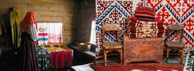 В качестве украшения дома использовались полотенца, ширинки, столешники, которые изготавливались невестой. Плелись кружева, вышивались салфетки, рушники, картины и прочие изделия народного промысла. Постельное белье, скатерти, занавески и покрывала также были в почете. Девушка должна была прийти в дом мужа и полностью его обновить своими творениями. Их количество говорило не только о достатке невесты, но и о ее трудолюбии.