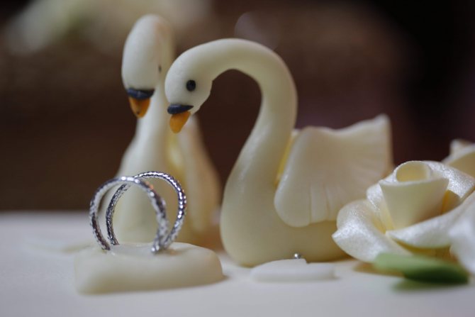 Свадебное торжество всегда заканчивается подачей торта. Традиционно сложилось, что завершающий десерт несёт в себе большую смысловую нагрузку, ведь раньше по красоте и вкусу определяли, насколько хорошая хозяйка получится из невесты. Помещая фигурки пары лебедей, новобрачные демонстрируют, что не планируют расставаться – так же, как и эти прекрасные птицы. Верность и взаимопонимание процветает в союзе, ведь между ними вечная и неувядающая любовь.