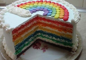 - Наверх можно выложить затейливым узором разноцветные драже из шоколада или орешков.