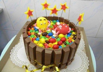 Но маленькие гости больше обращают внимание на красивое оформление, нежели на компонентный состав или экзотические ингредиенты. Оригинально оформленный торт к детскому празднику можно сделать самостоятельно, например, украсив его вкусными разноцветными конфетами, которые малыши любят больше всего на свете