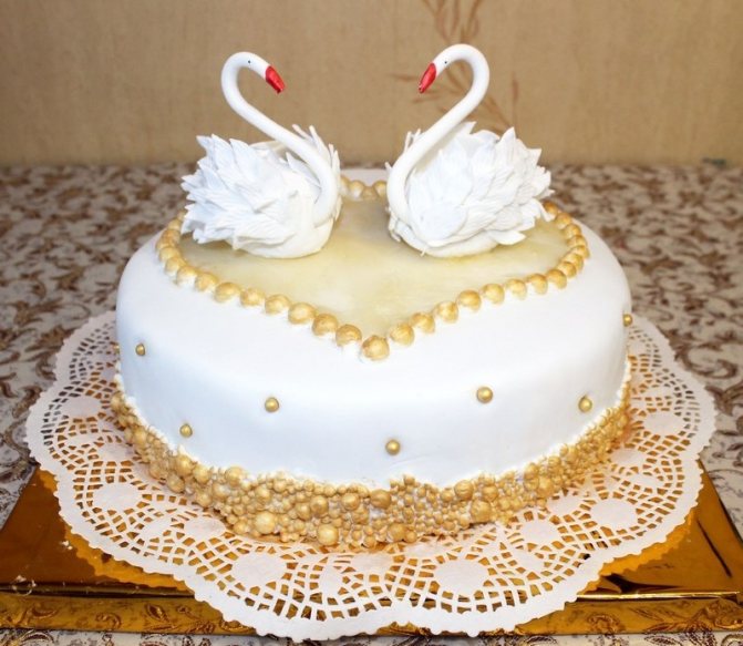 Изготовленные из этой мастики лебеди получатся очень вкусными, но мягкими. Поэтому этот вариант не подойдет в том случае, если торт будет долго стоять.