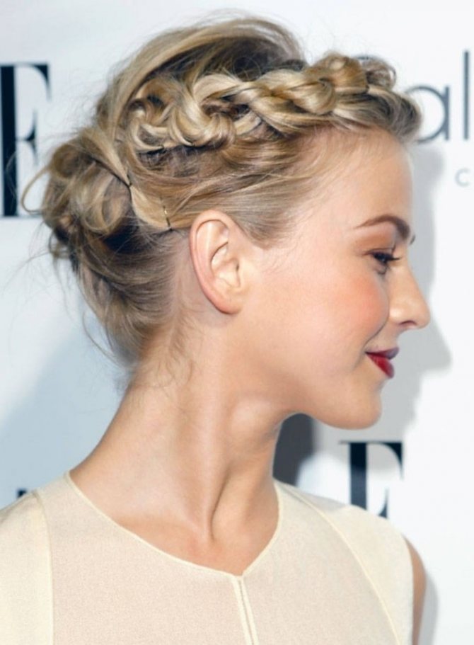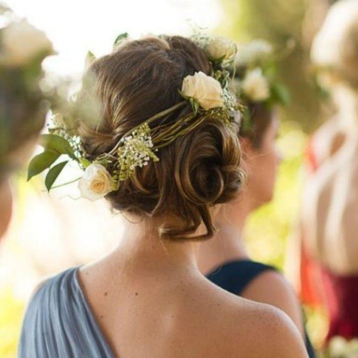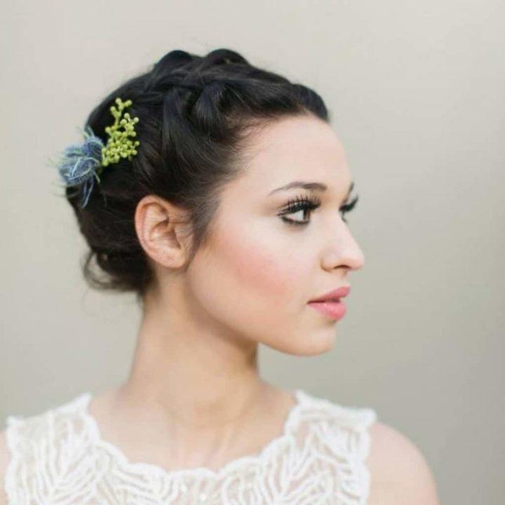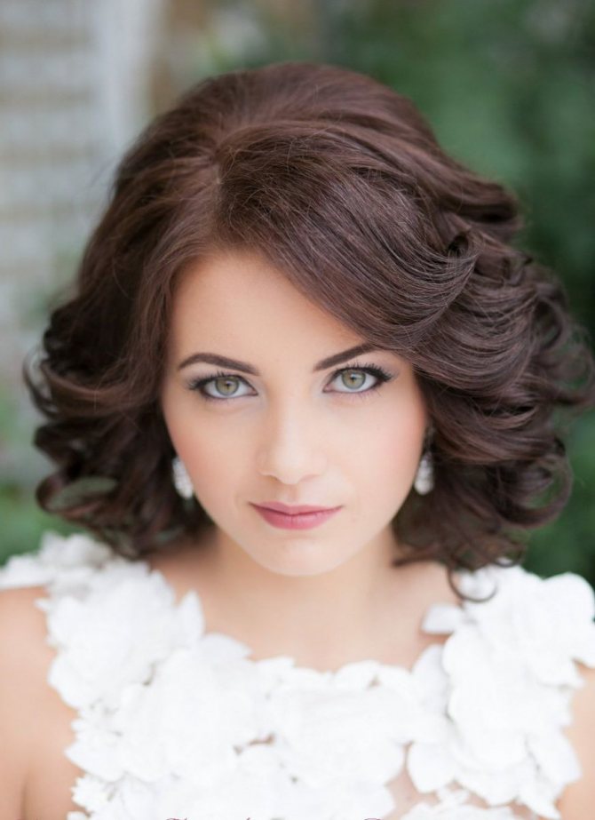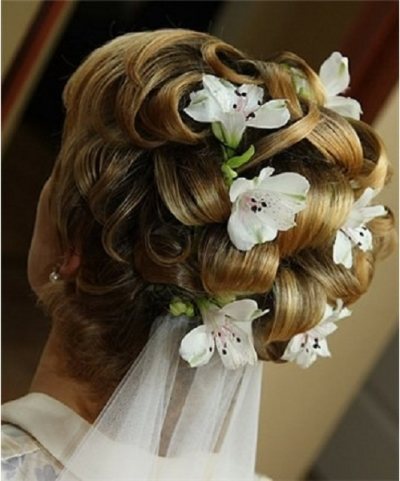 Как видите, типов причесок немыслимое количество. Даже на самые короткие волосы можно придумать оригинальную прическу: завить височные пряди колечком, а остальные локоны гладко зачесать назад, закрепив укладку ободком с цветами.