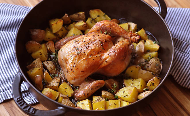 Готовим просто и быстро. Запечённая утка кусочками с картофелем в утятнице. Пошаговый рецепт с фото