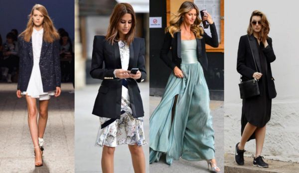 Для casual-луков выбирайте сочетание черного пиджака с кроссовками, как американская актриса и певица Зендая. Для эффектных вечерних образов носите черный пиджак с платьем в бельевом стиле, как Зои Кравиц.